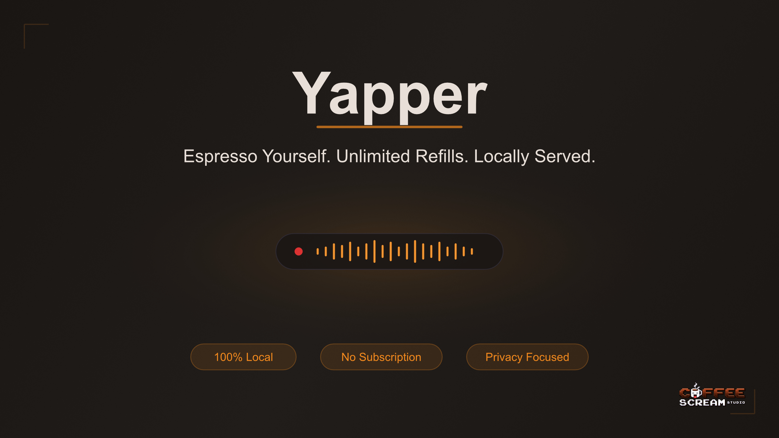 Yapper was created as an alternative to cloud-based voice transcription services, which mostly cost a monthly fee and likely collect your data. Yapper is completely local. No data is sent anywhere.